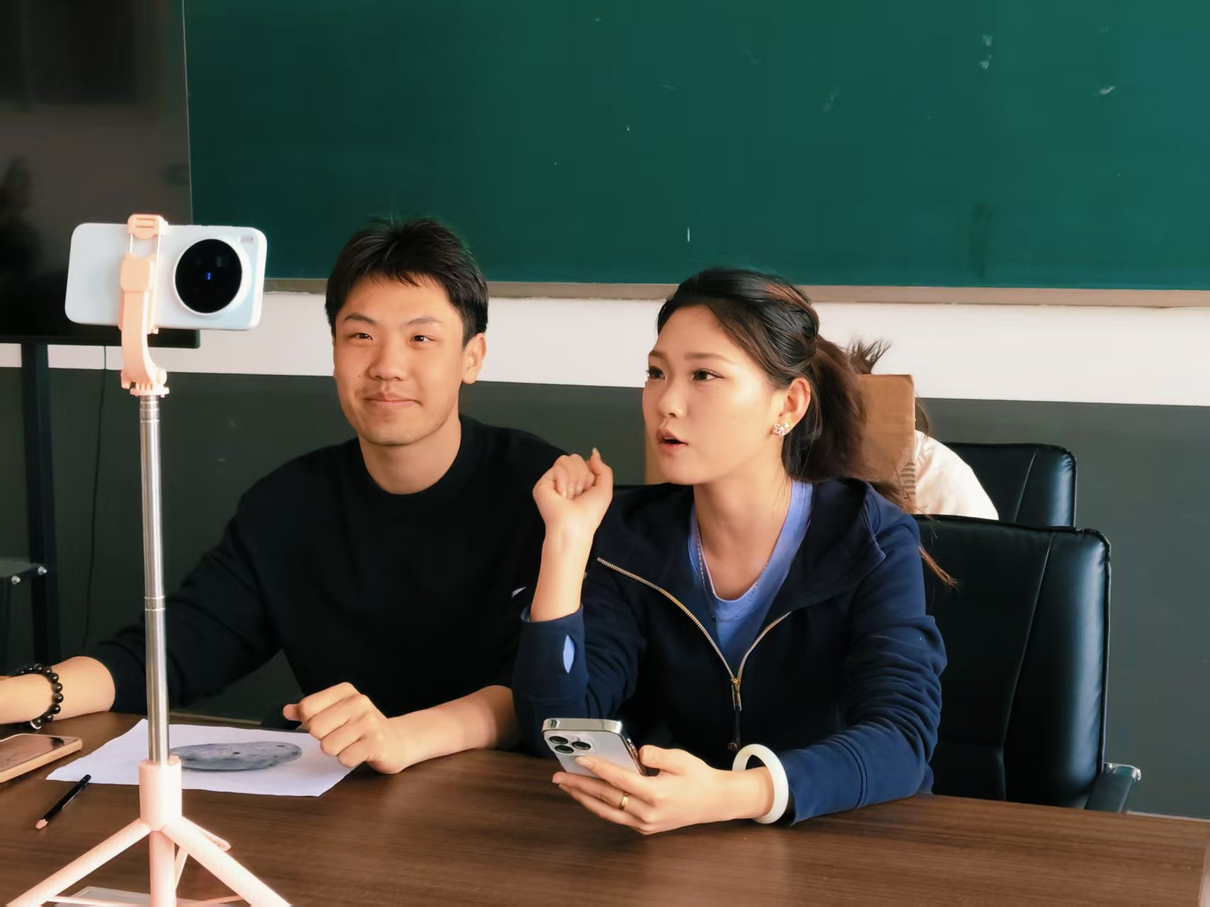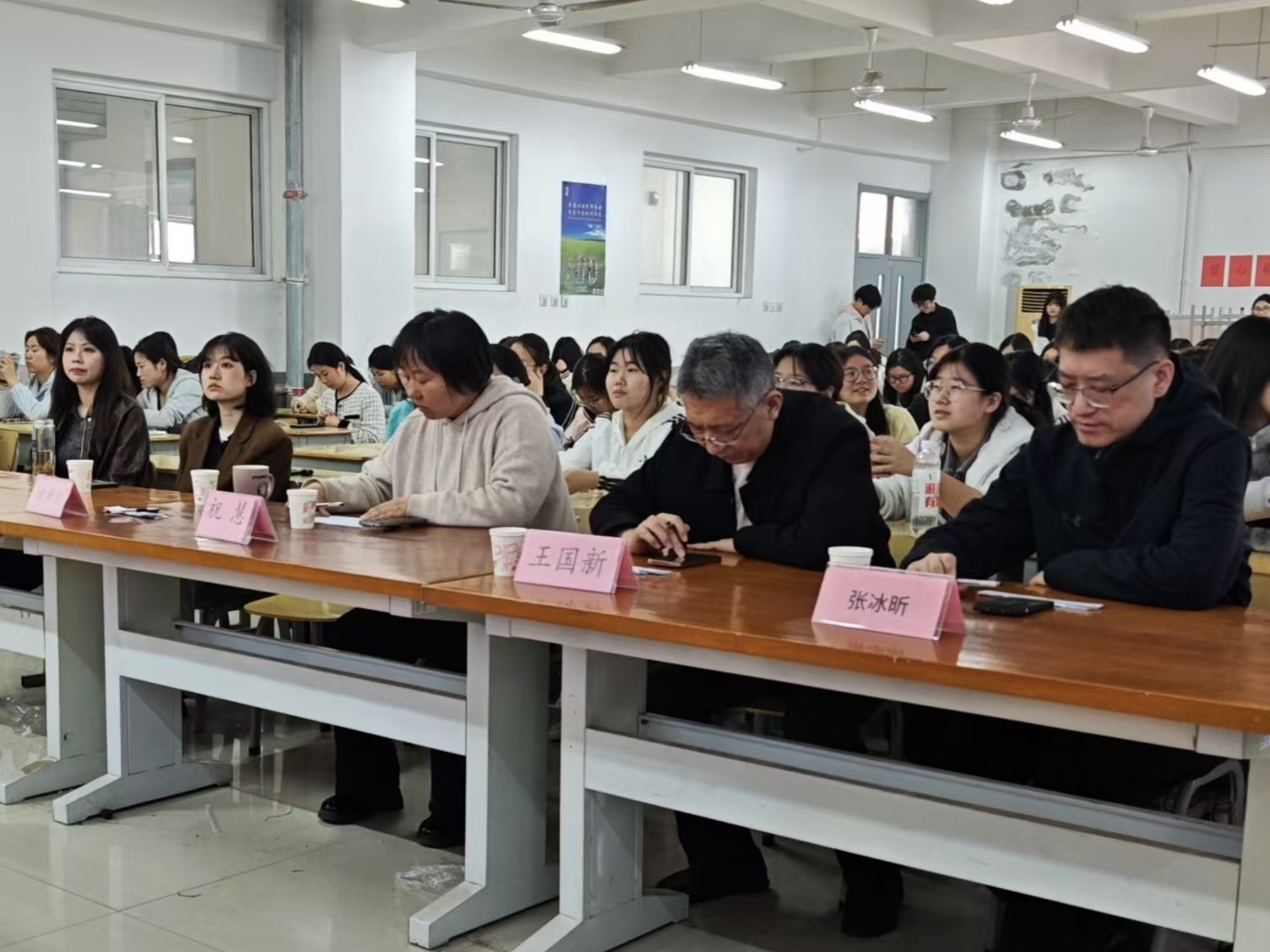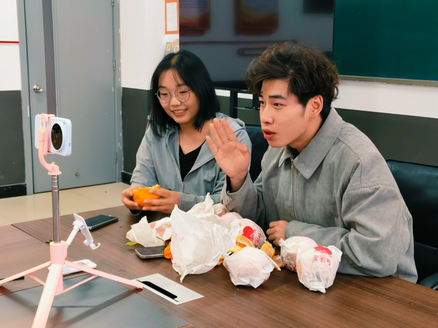 比赛现场,各参赛队伍依次登台亮相,在直播展示中从容自信、默契配合。从生动有趣的开场引入,到细致贴心的产品讲解;从实时互动答疑,到自然流畅的环节收尾,每一个细节都充分展现出同学们扎实的前期筹备、娴熟的专业技能与灵活的现场应变能力。活动期间,直播间内更是热度爆棚,评论区弹幕滚动不停,点赞不断,线下观众区掌声此起彼伏、接连不断。